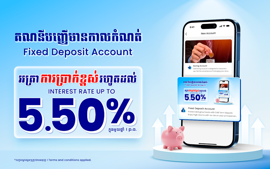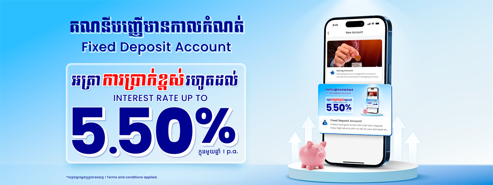 Protect and grow funds with CAB Fixed Deposit. Enjoy high returns with no risk on your principal and enjoy flexible terms to suit your needs.